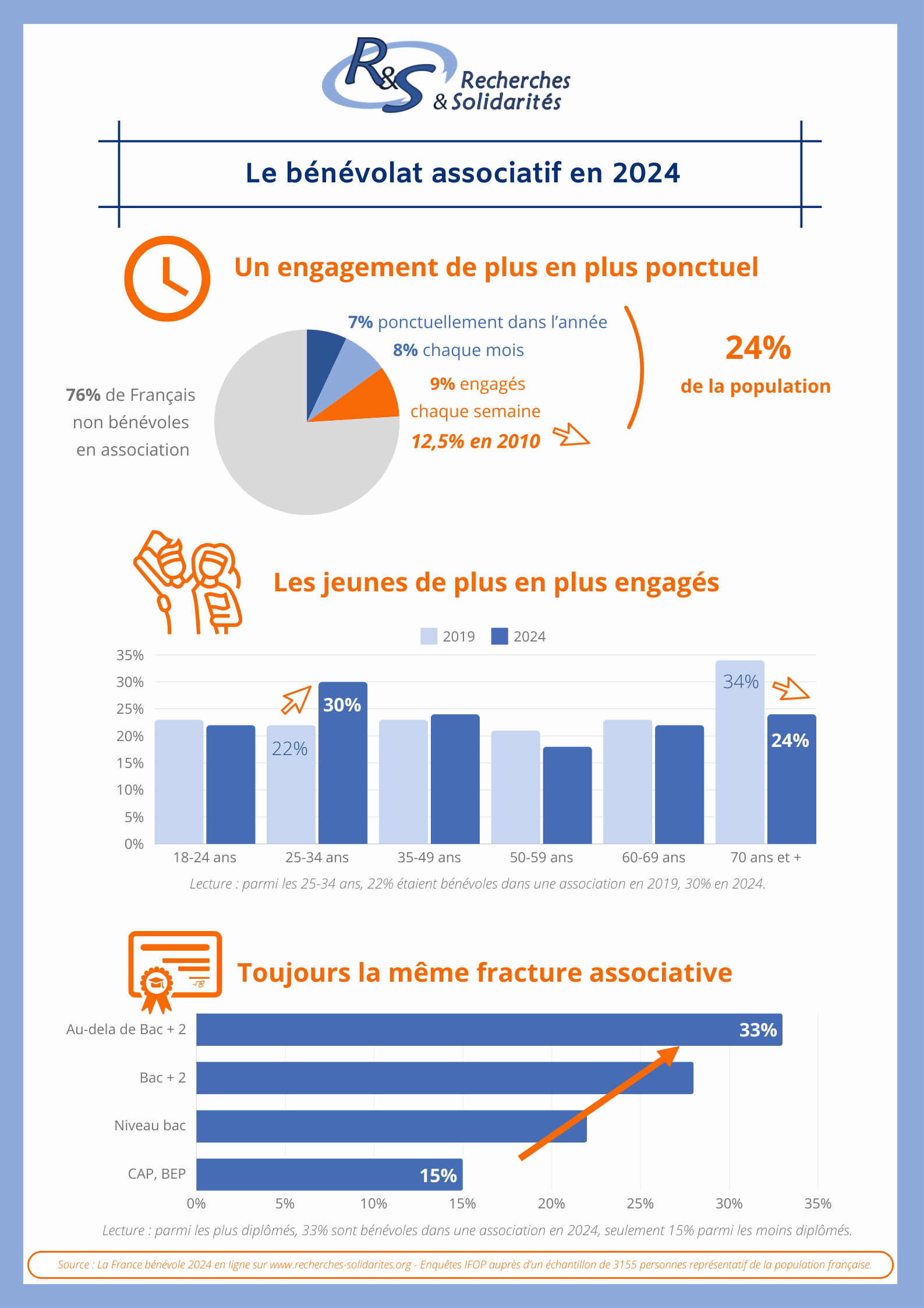 Le réseau Recherches et Solidarités a publié en mai 2025 la 20ème édition de son étude annuelle intitulée ‘La France bénévole‘.